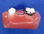 The Nance maintains the position of the maxillary molars without using any other teeth. The plastic button on the palate provides stability.